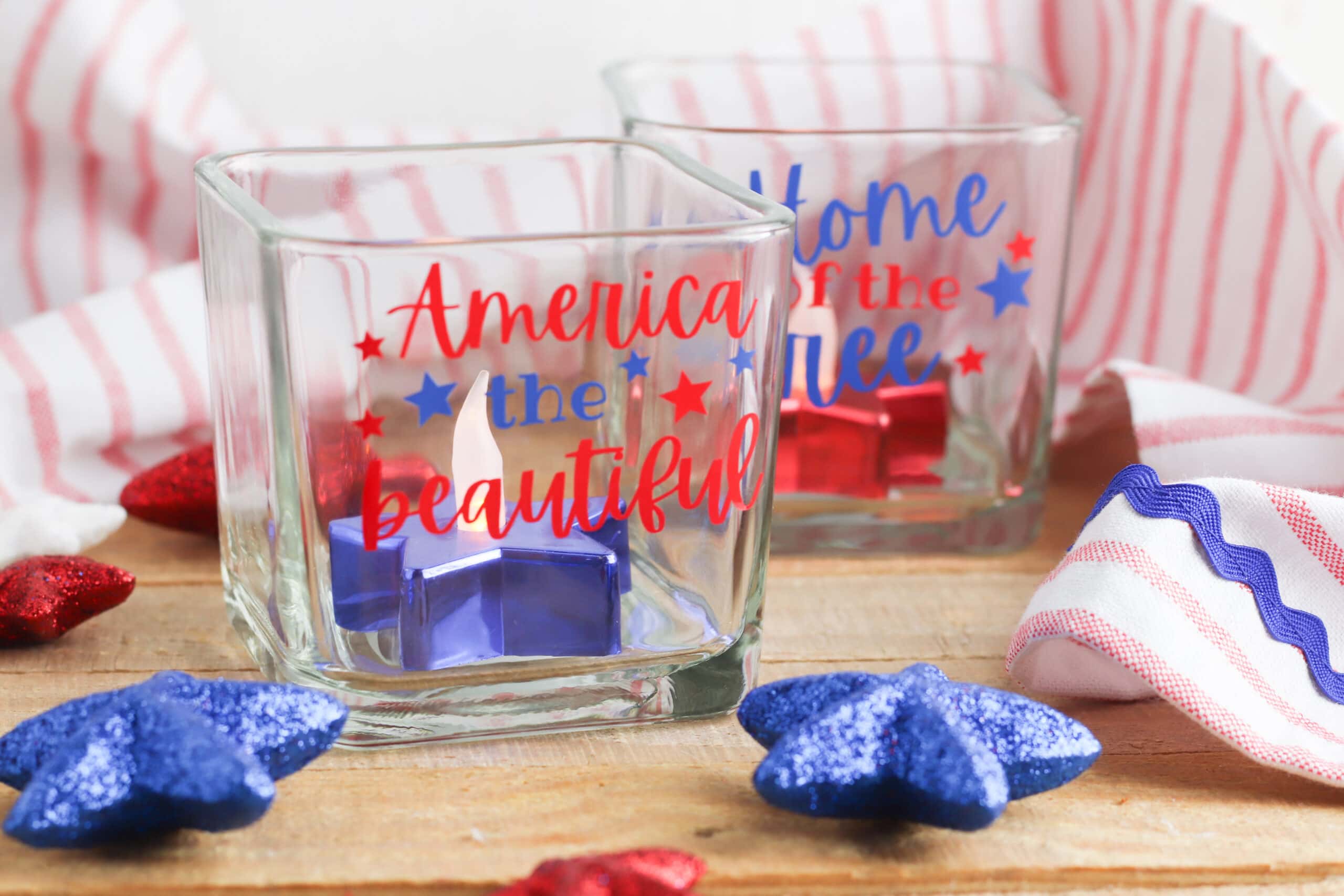 July 4th Cricut Crafts: Patriotic Candle Holders