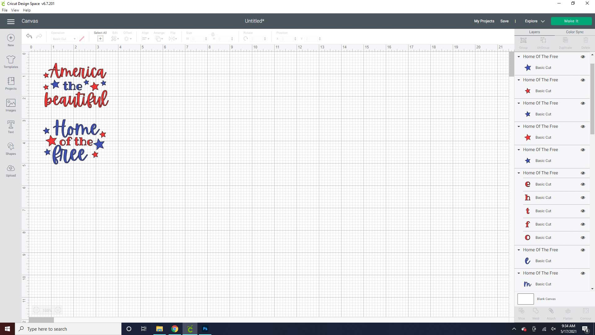- Upload the patriotic SVGs in Design Space.