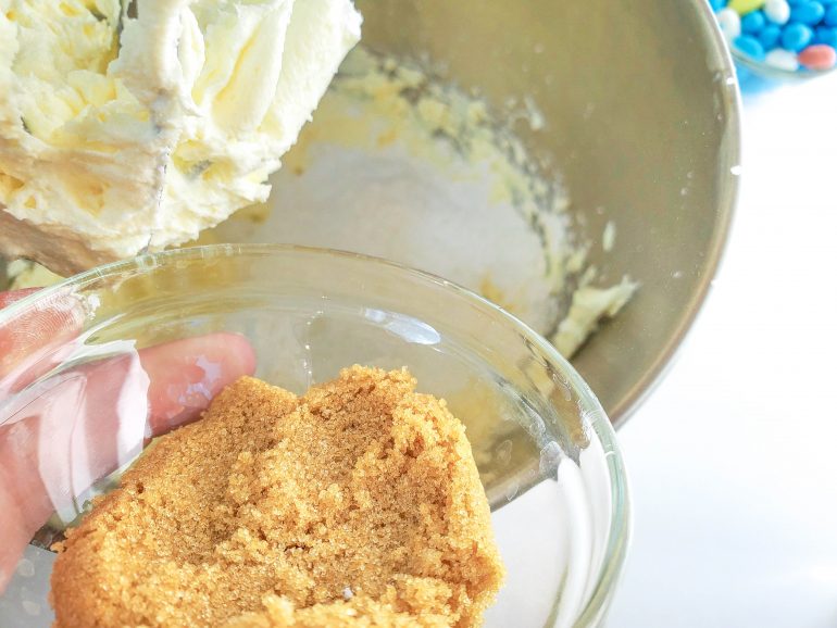 To get started, you will need cream cheese, butter, powdered sugar, brown sugar, vanilla extra, and mini Robin Eggs candy.