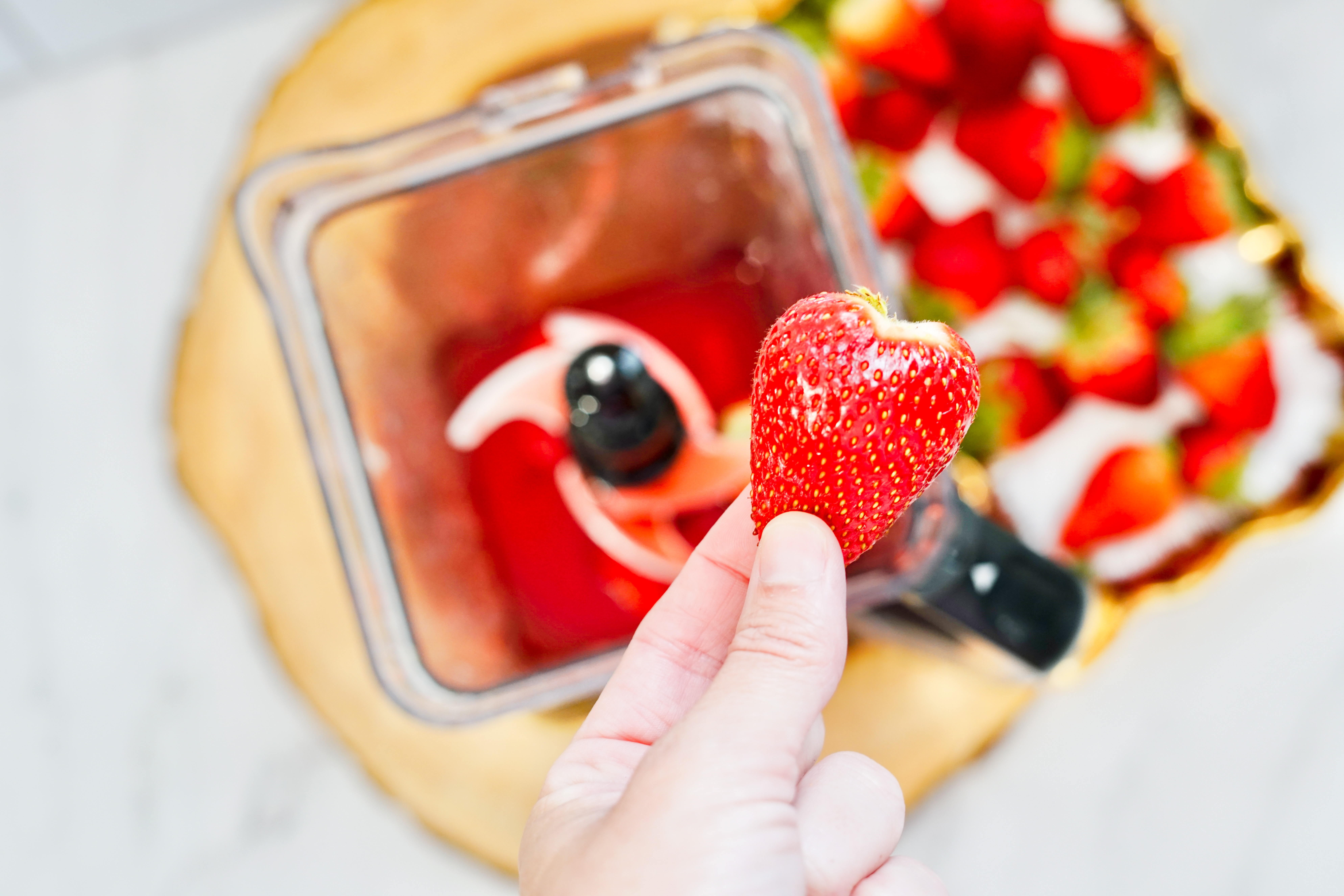 - Garnish with a strawberry.